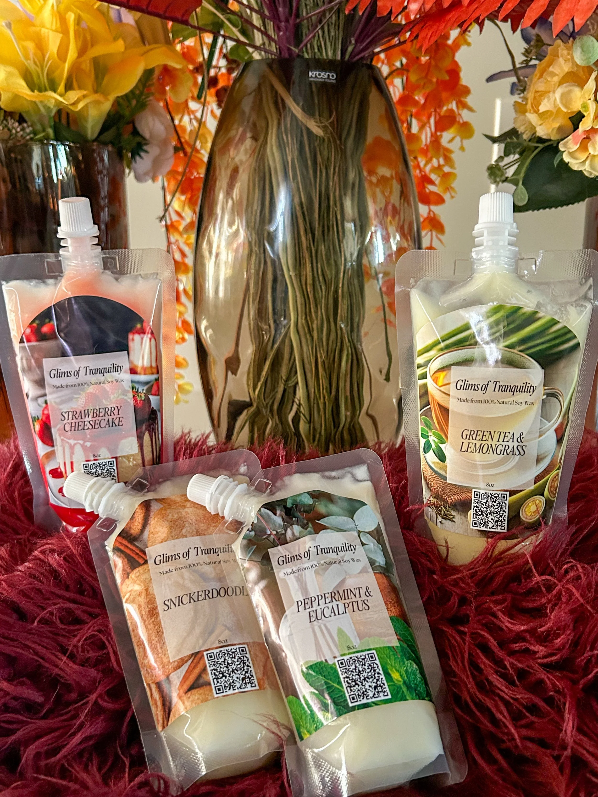 Glims of Tranquility was est.October 2022 when i was on a long path of darkness searching for my light , something to bring me joy. There I found the elements of passion & peace. Passion: “A strong and barely controllable emotion”. Peace:”Freedom of disturbance; tranquility”. Together the two combined and led me to the brightest flame I’ve ever seen...Homemade aromatherapy candles made with passion & peace. Our goal is to relax you mentally physically and of course spiritually. The crackling of the wooden wick burning brings the energy of tranquility into any atmosphere!